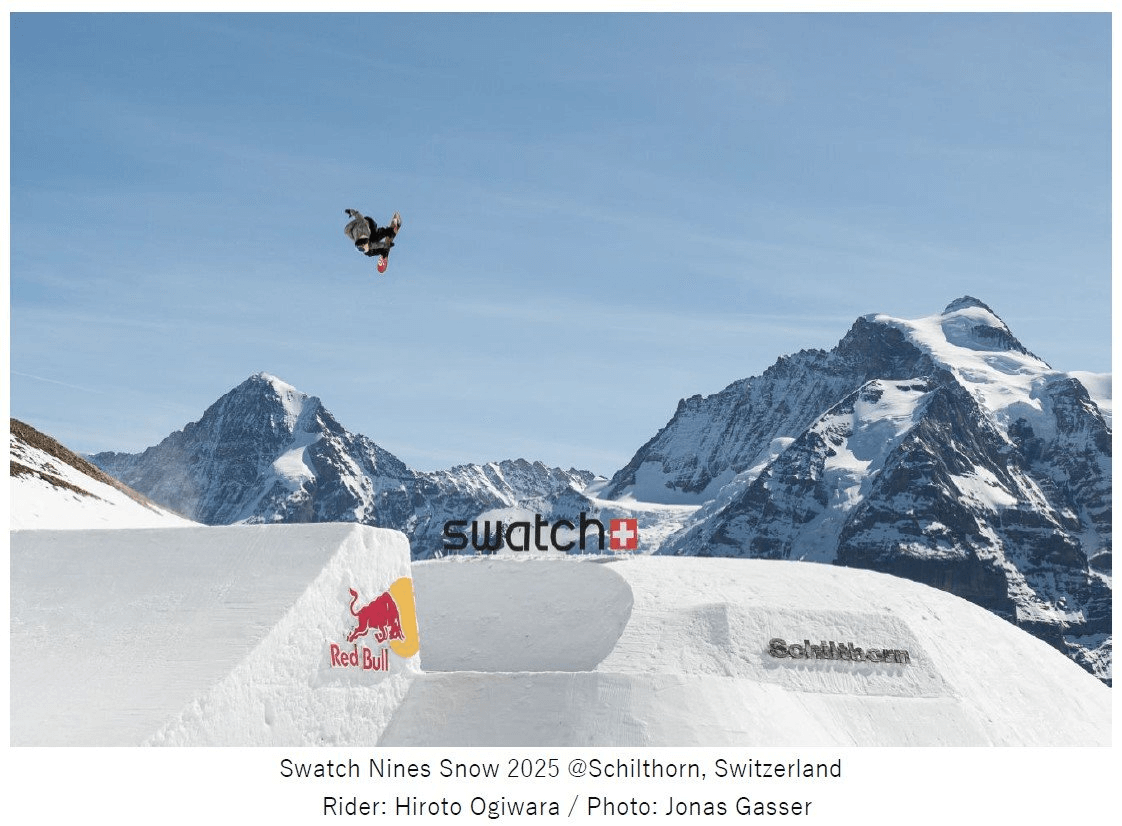 従来の競技大会とは異なり、Swatch Ninesは「競い合う」のではなく、「魅せ合う」ことに主眼を置いています。招待制で選出されたトップアスリートたちは、唯一無二の特設雪上建築物を舞台に、限界を超えるトリックと創造性を追求し、それを世界最高水準の映像技術で記録し、世界へ発信します。まさに「スポーツ×アート×メディア」が融合した、次世代型エンターテインメントです。