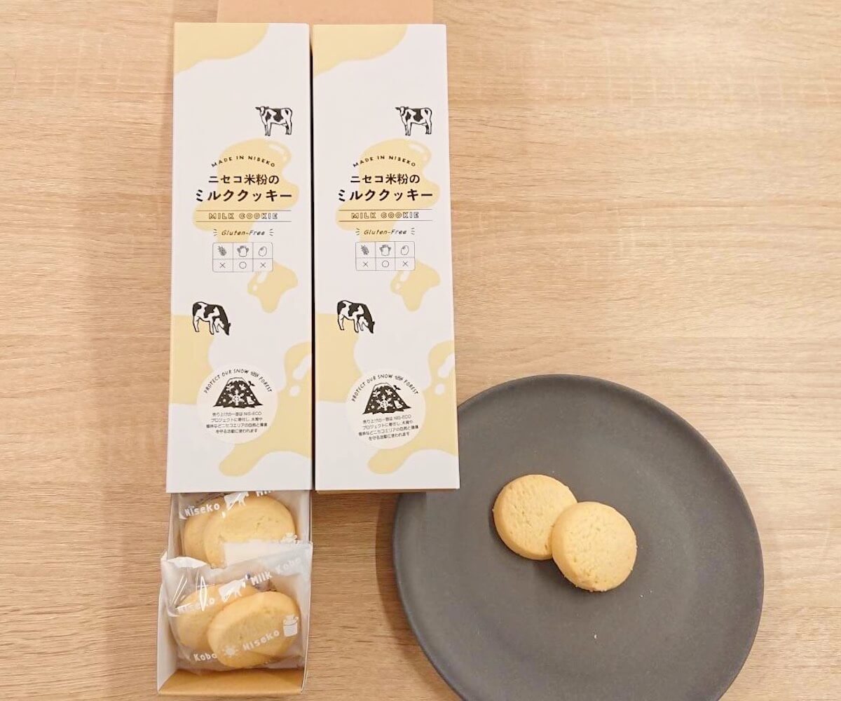 ニセコの大地で育った牛たちのミルクと俱知安産のお米「ななつぼし」の米粉で作ったクッキー。紅茶やコーヒーにぴったりの優しい味わいです。